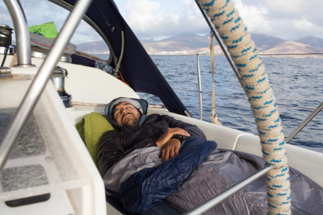 Thus began the first adventure of Viento Nómada: 10 days sailing from Lanzarote to Gran Canaria. We slept in wild bays, bivouacked on isolated beaches, and explored caves and small oases within ravines. A transformative journey for 5 friends and a sailboat.